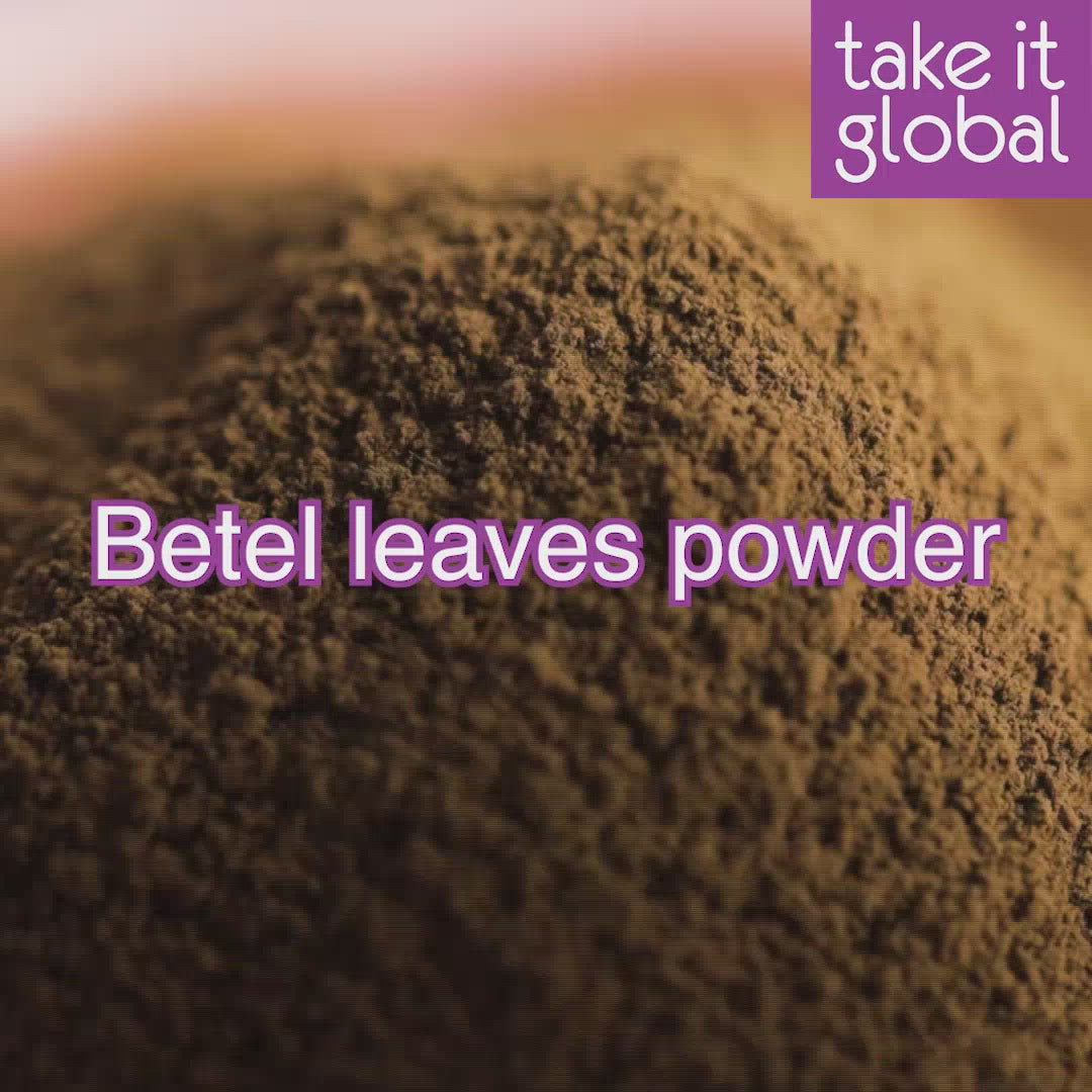 The betel (Piper betle) is the leaf of a plant growing primarily in Southeast Asia that belongs to the same family as the pepper. Betel leaf is also called Paan. Betel leaf powder has been used from ancient times as an aromatic stimulant and anti-flatulent. It is useful in arresting secretion or bleeding and is an aphrodisiac. Its leaf is used in several common household remedies.